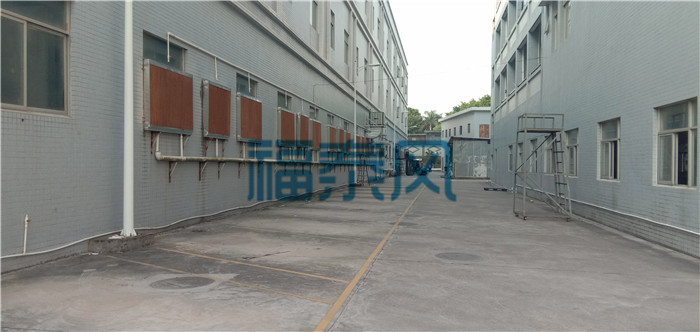 3.環保空調,對車間外空氣降溫后送入車間內降溫。車間外墻上安裝環保空調,它是通過風機往車間內送風,室外的新鮮空氣流經浸水的濕簾后空氣與水份充分接觸同時吸收空氣重點中的顯熱,從而達到降溫、換氣、除塵、增加車間內空氣含氧量的目的,這個方案特別適用于高溫及人群密集場所。